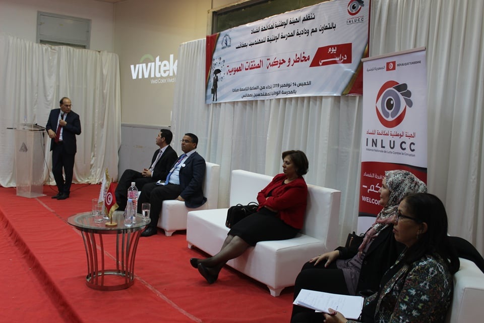 شوقي الطبيب - الصفقات العموميةاحتضنت المدرسة الوطنية للمهندسين بصفااقس يوم امس الخميس 14 نوفمبر 2019 فعاليات يوما درسيا حول مخاطر وحوكمة الصفقات العمومية من تنظيم الهيئة الوطنية لمكافحة الفساد بالتعاون مع ودادية المدرسة الوطنية للمهندسين بصفاقس وقد اشرف عليه العميد شوقي الطبيب رئيس الهيئة .