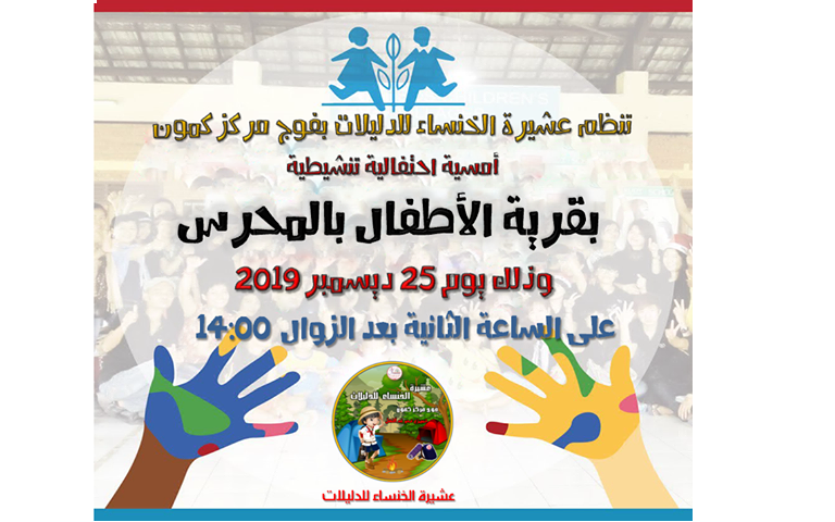 بمناسبة الاحتفالات بمرور ثلاثين سنة على الإتفاقية الدولية لحقوق الطفل و بشهر حماية الطفولة و بمناسبة حلول السنة الإدارية الجديدة 2020، تنظم عشيرة الخنساء للدليلات بفوج مركز كمون للكشافة التونسية أمسية إحتفالية تنشيطية ترفيهيّة بقرية الاطفال إس أو إس المحرس وذلك يوم الإربعاء 25 ديسمبر الجاري.