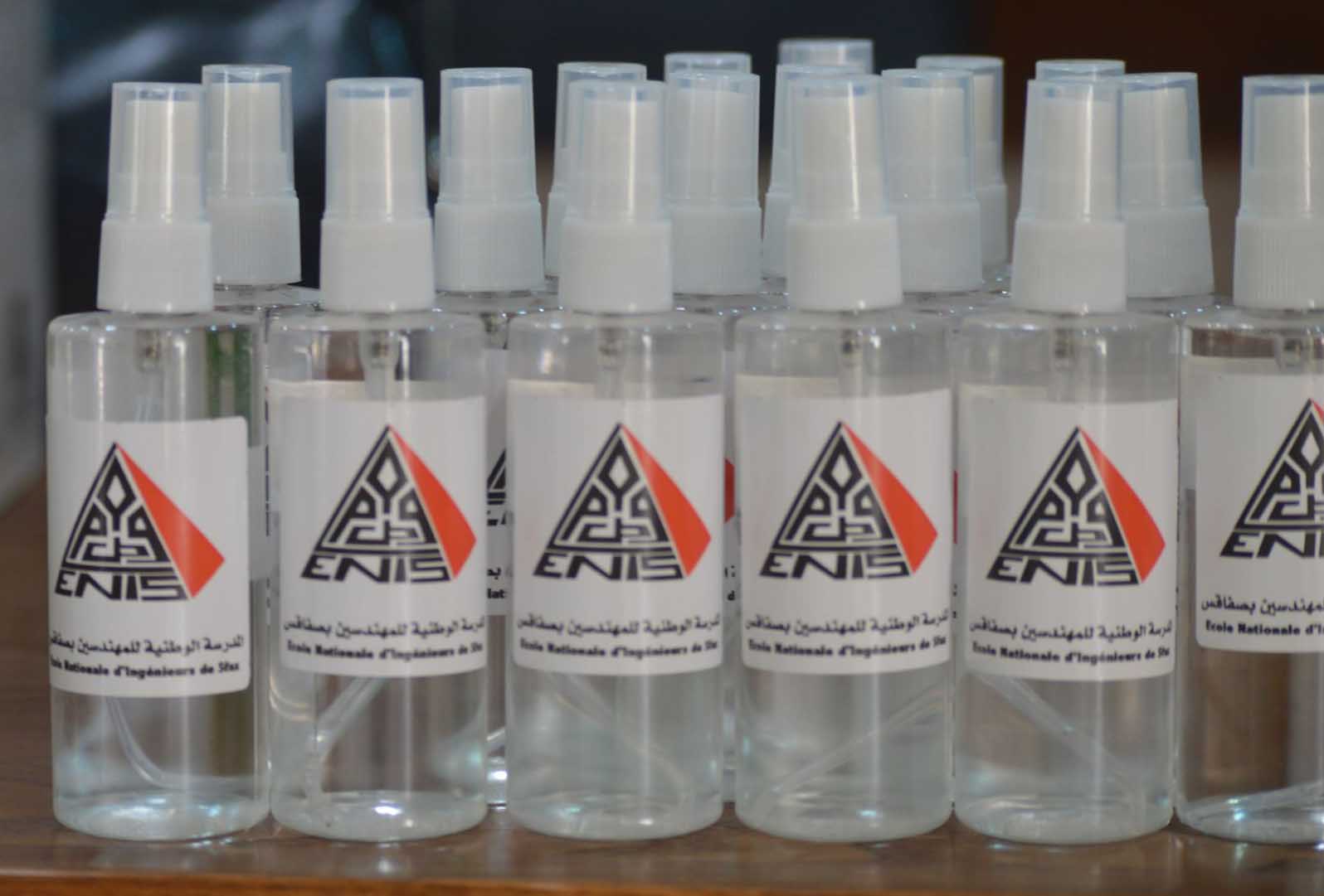 أعدت المدرسة الوطنية للمهندسين بصفاقس محلول التعقيم الكحولي وفق معاير منظمة الصحة العالمية, من طرف أعوان مخبر قسم الهندسة البيولوجية لكافة الأسرة الجامعية بالمؤسسة.