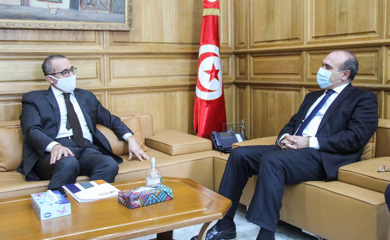 وزير السياحة ووزير الشؤون الثقافية بالنيابة الحبيب عمّار صباح اليوم الاثنين 12 أكتوبر 2020, مالك اللوز نائب رئيس مؤسسة بنك تونس العربي الدولي للشباب