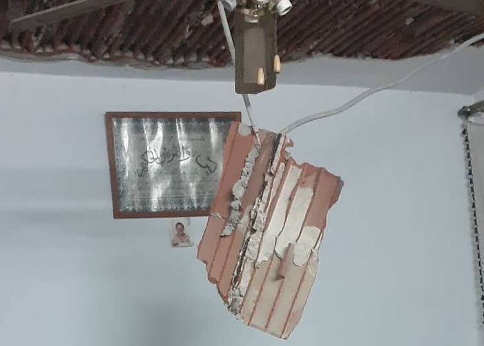كما أشارت انه ليلة البارحة سقط سقف الصالة و سقف احد الغرف, ومن ألطاف الله أنه لم تسجل أي إصابة.