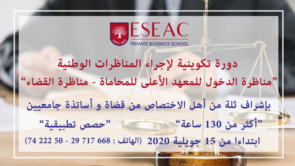 تنظم المدرسة العليا الخاصة للدراسات الإدارية والتجارية بصفاقس دورة تكوينية لتأهيل الطلبة لإجراء المناظرات الوطنية التالية :