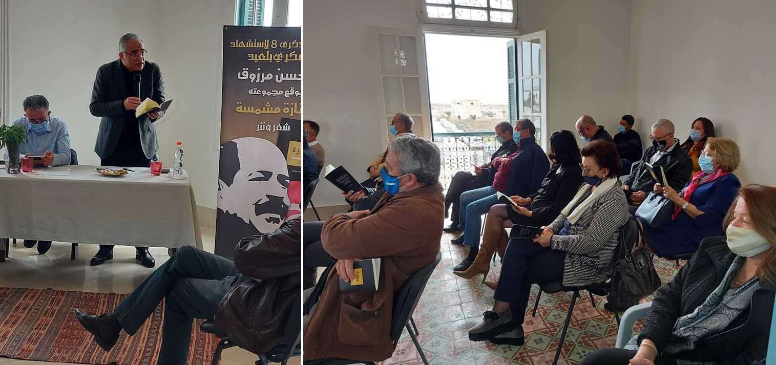 قدّم رئيس حركة مشروع تونس محسن مرزوق اليوم الأحد 7 فيفري 2021 ببرج السلامي بطريق سيدي منصور، مجموعته “جنازة مشمسة” راوح فيها بين الشعر والنثر اهداءً لروح شكري بلعيد تزامنا مع الذكرى الثامنة لاغتياله .