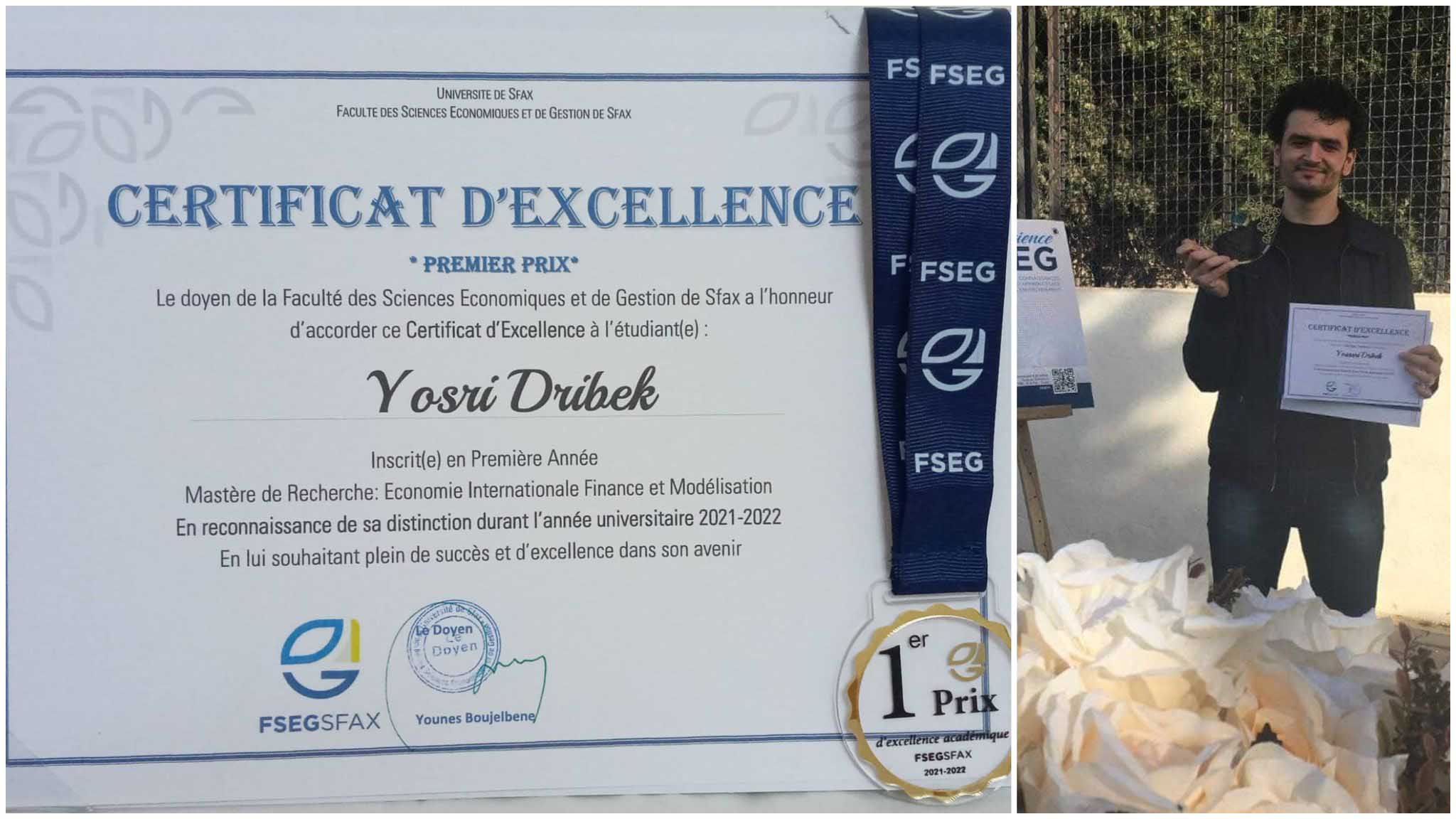 هذا الطالب الذي أبرم مع النجاح والتميز والجوائز عقدا طويل المدى مع المرتبة الاولى الى أن بلغ مرحلة «الماجستير البحثى في الاقتصاد الدولي والتمويل والنمذجة »، فلم يتزحزح أيضا عن خط المسيرة الموفقة، لكن الاهم هذه المرة أن الامتياز كان عبر قبوله في منحة التميز “إيفل” لمواصلة الدراسة مرحلة ماجستير في الاقتصاد الدولي بجامعة أورليان بفرنسا.