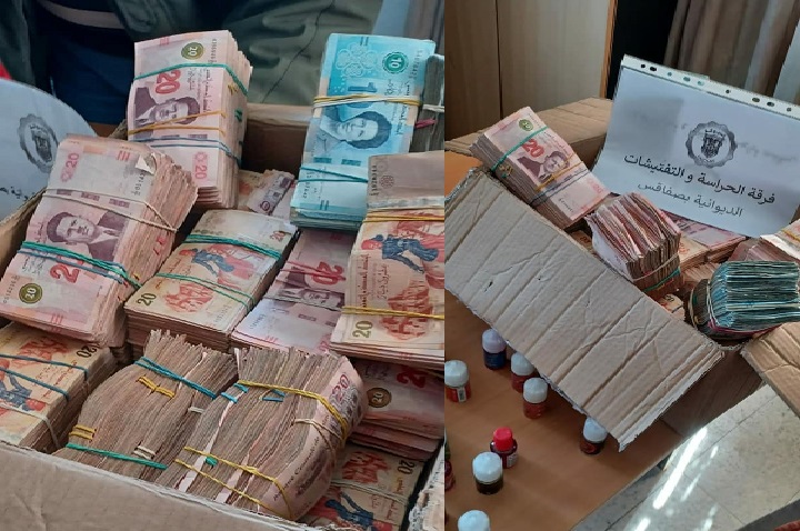 تمكنت فرقة الحرس الديواني بصفاقس، من حجز مبلغ من العملة التونسية بقيمة 240 ألف دينار داخل محل بإحدى المناطق بجهة صفاقس على خلاف الصيغ القانونية ولا يملك صاحب المحل في شأن المبلغ أية وثيقة تثبت شرعية مسكه.
