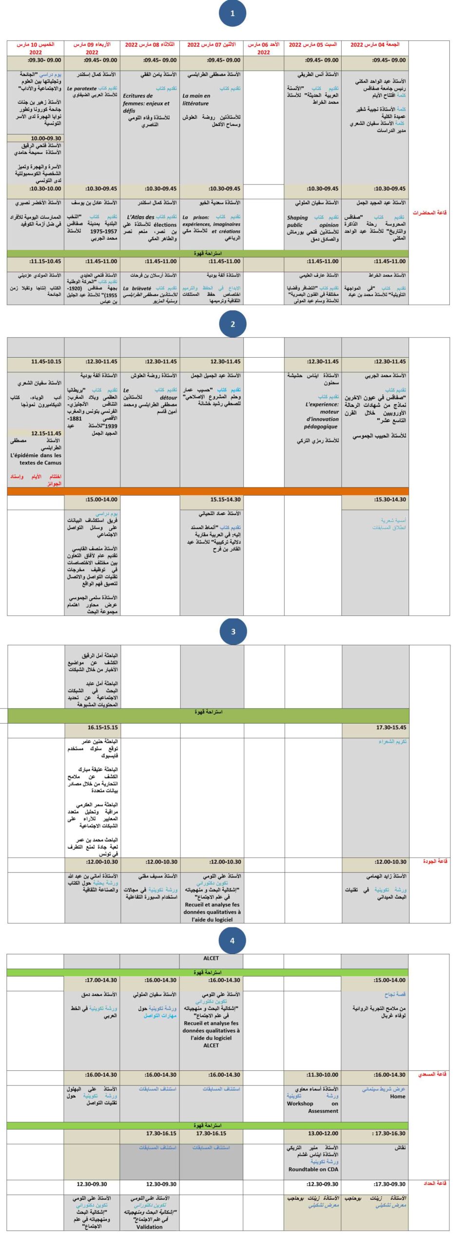 La clôture de cette session des Journées du livre et de la Création aura lieu le jeudi 10 mars 2022 avec au programme une journée d’étude intitulée « La pandémie et ses manifestations entre Sciences Sociales et Littérature ».